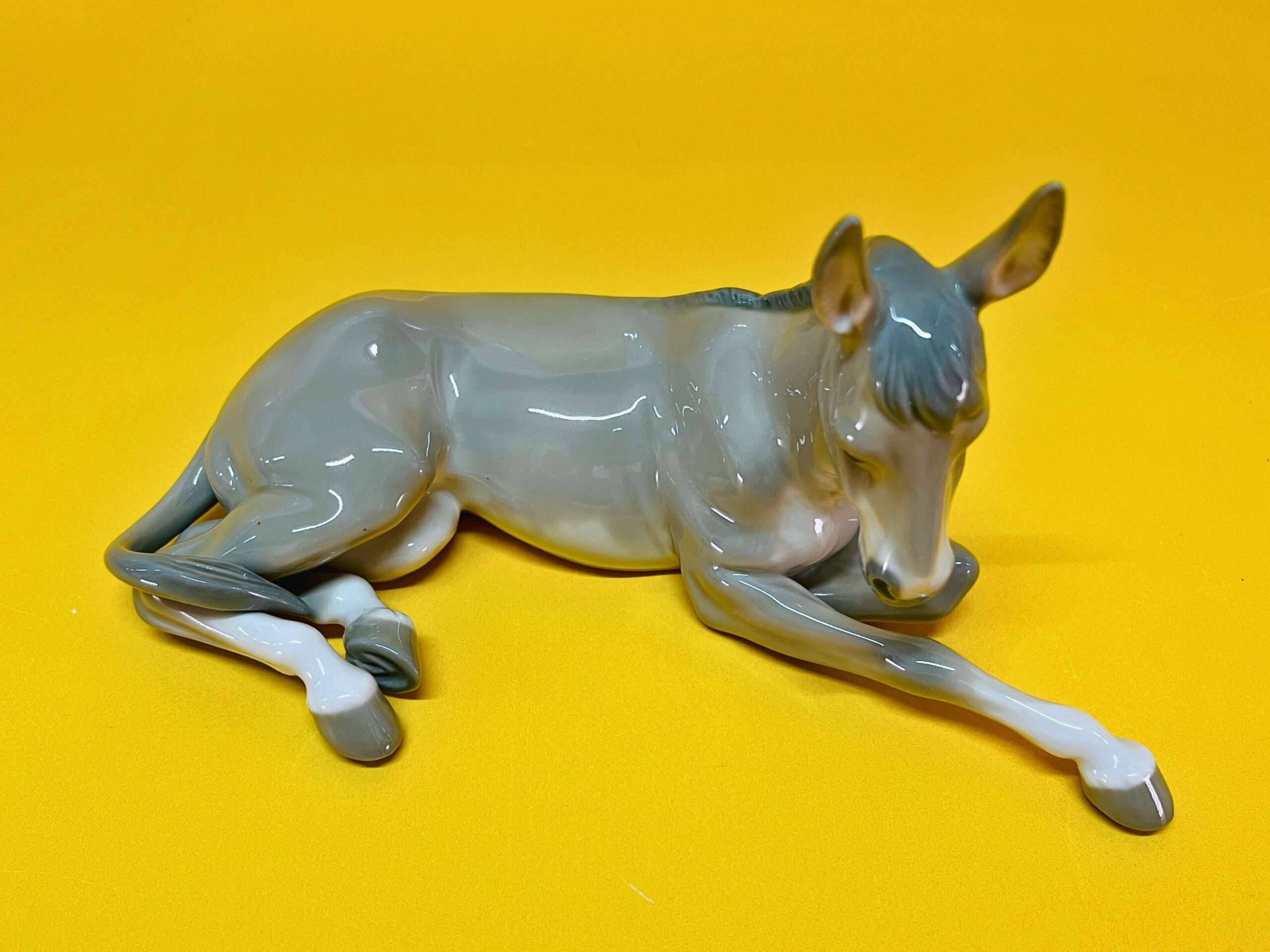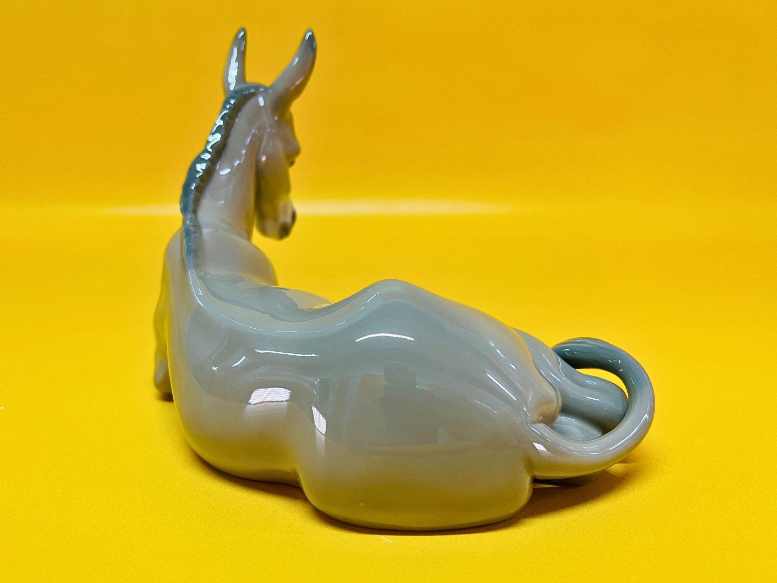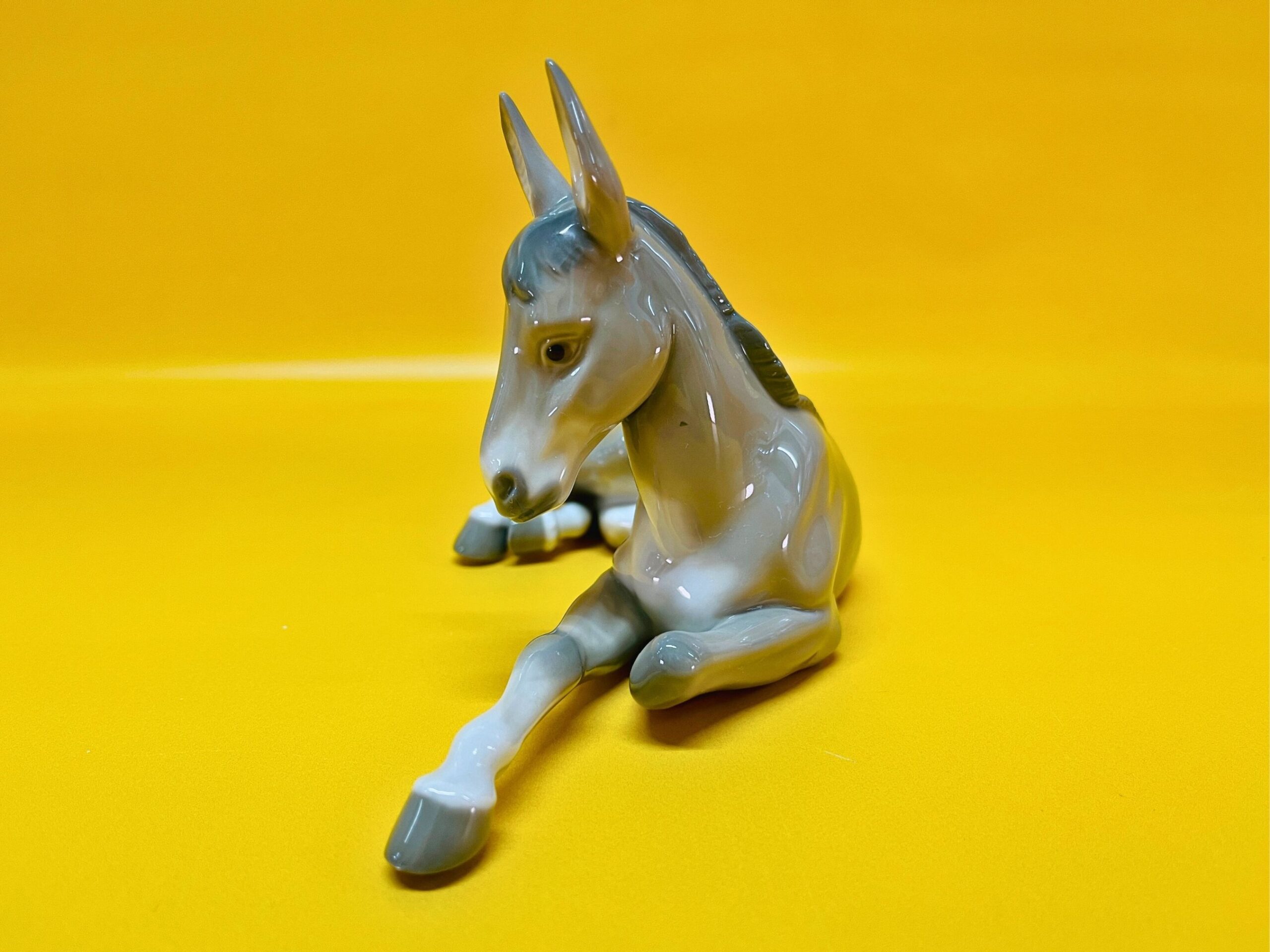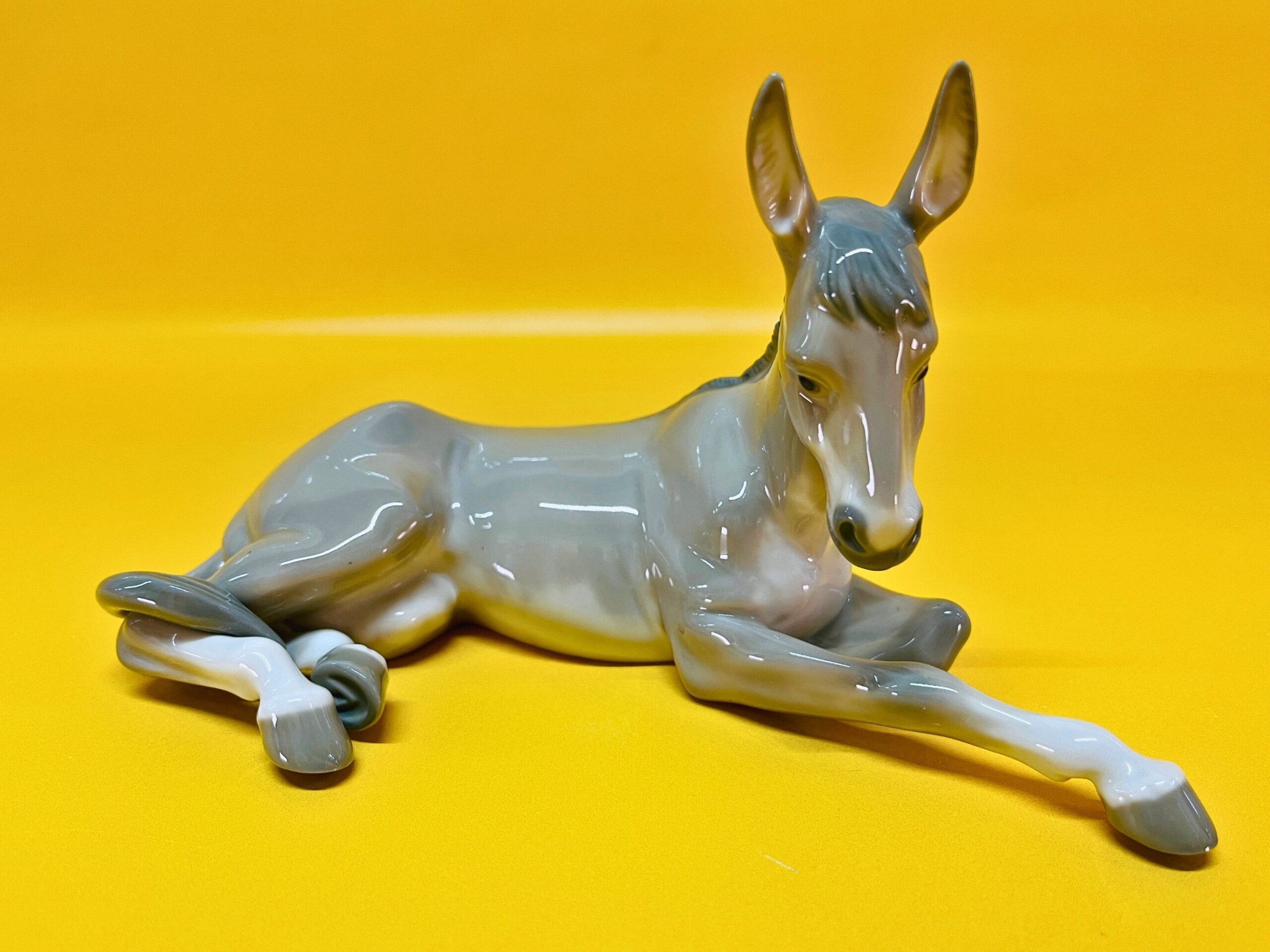 This elegant porcelain figurine by Lladro features a peaceful donkey, part of the beloved Nativity collection, designed in the 1980s. Handmade in Spain, it displays the exceptional craftsmanship and serene expression characteristic of Lladro’s traditional religious and animal-themed pieces.