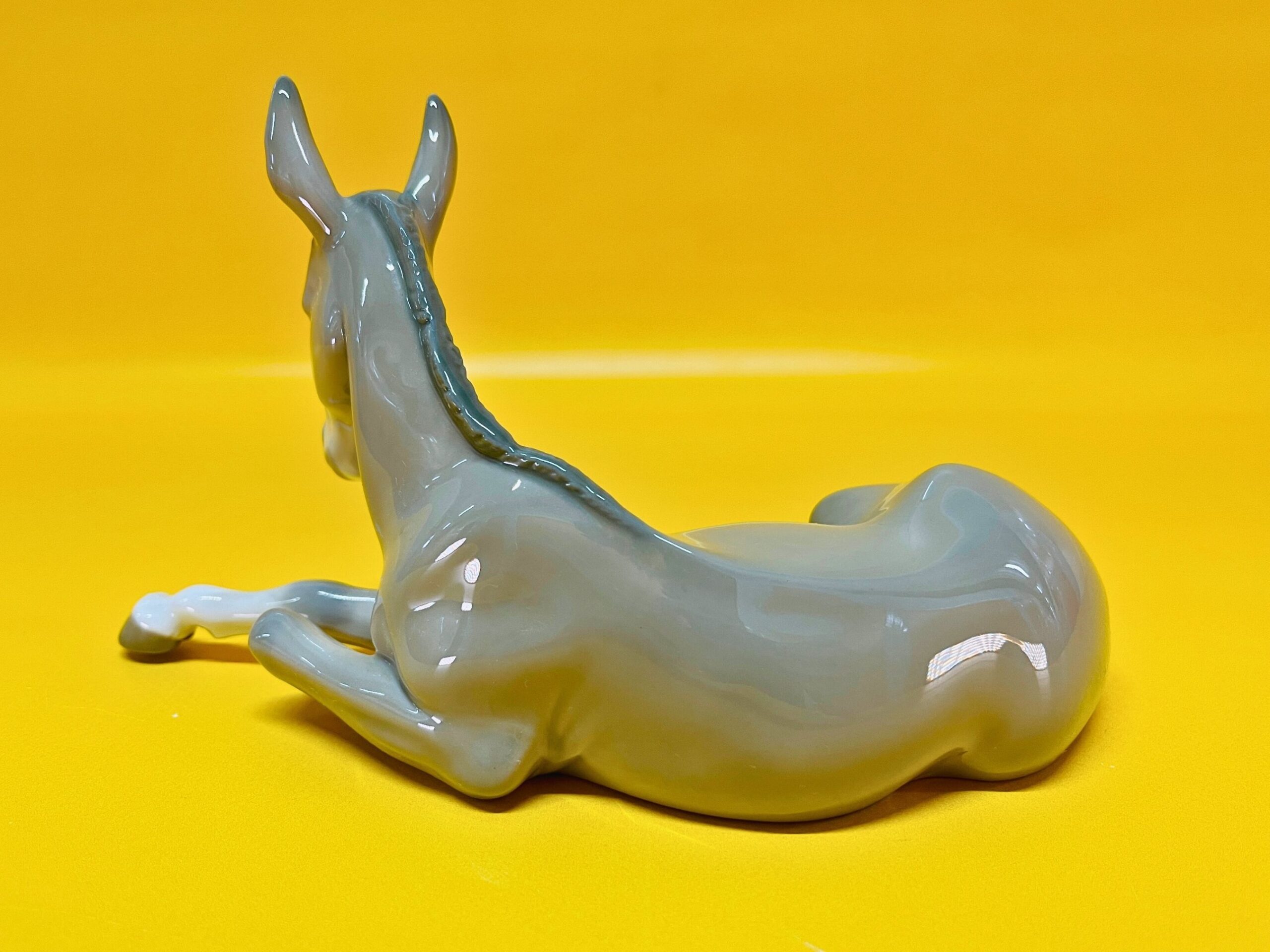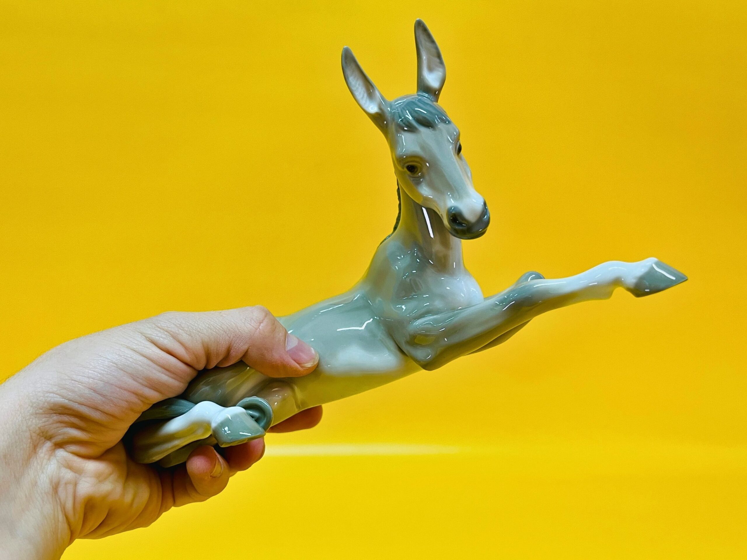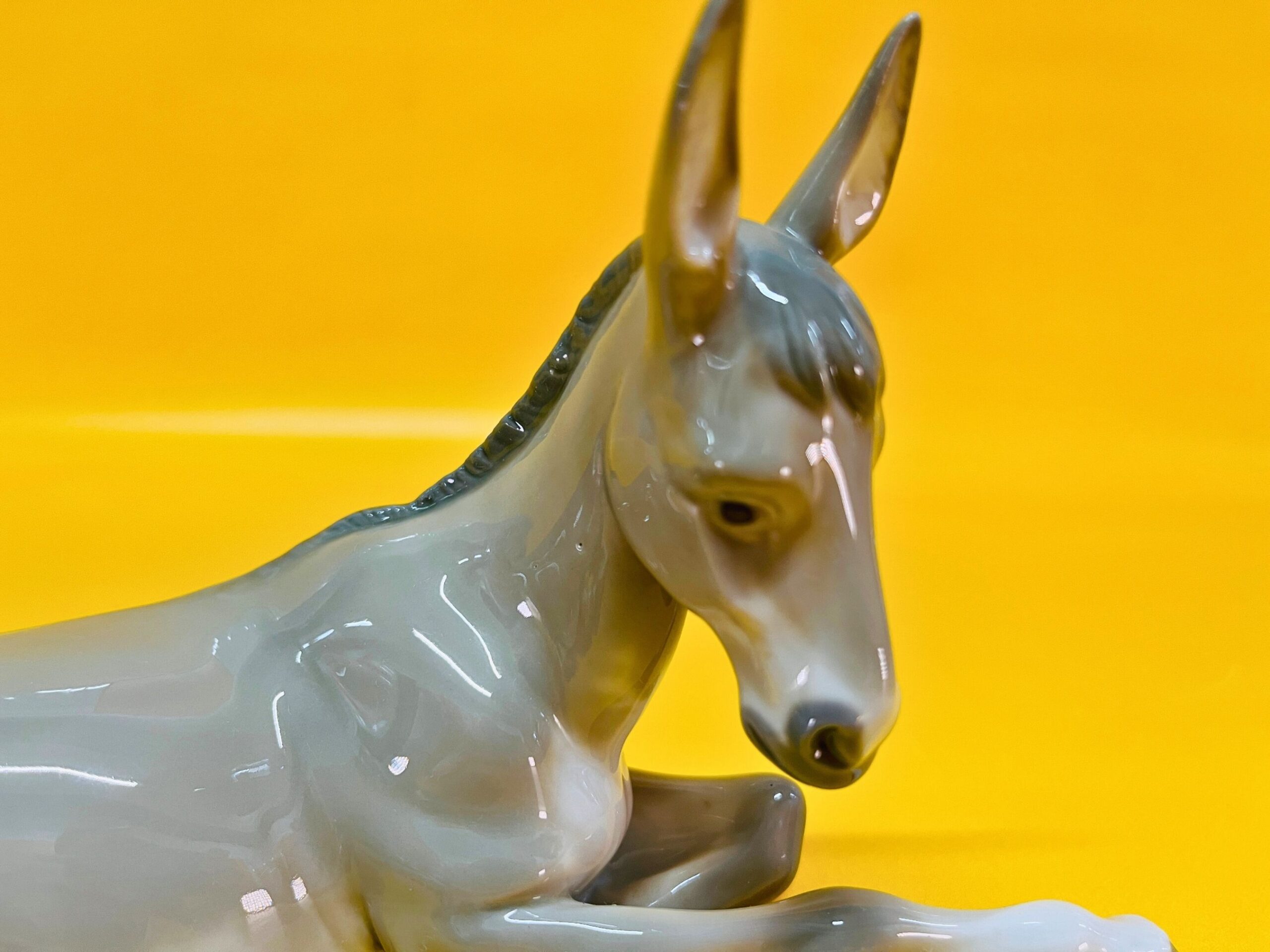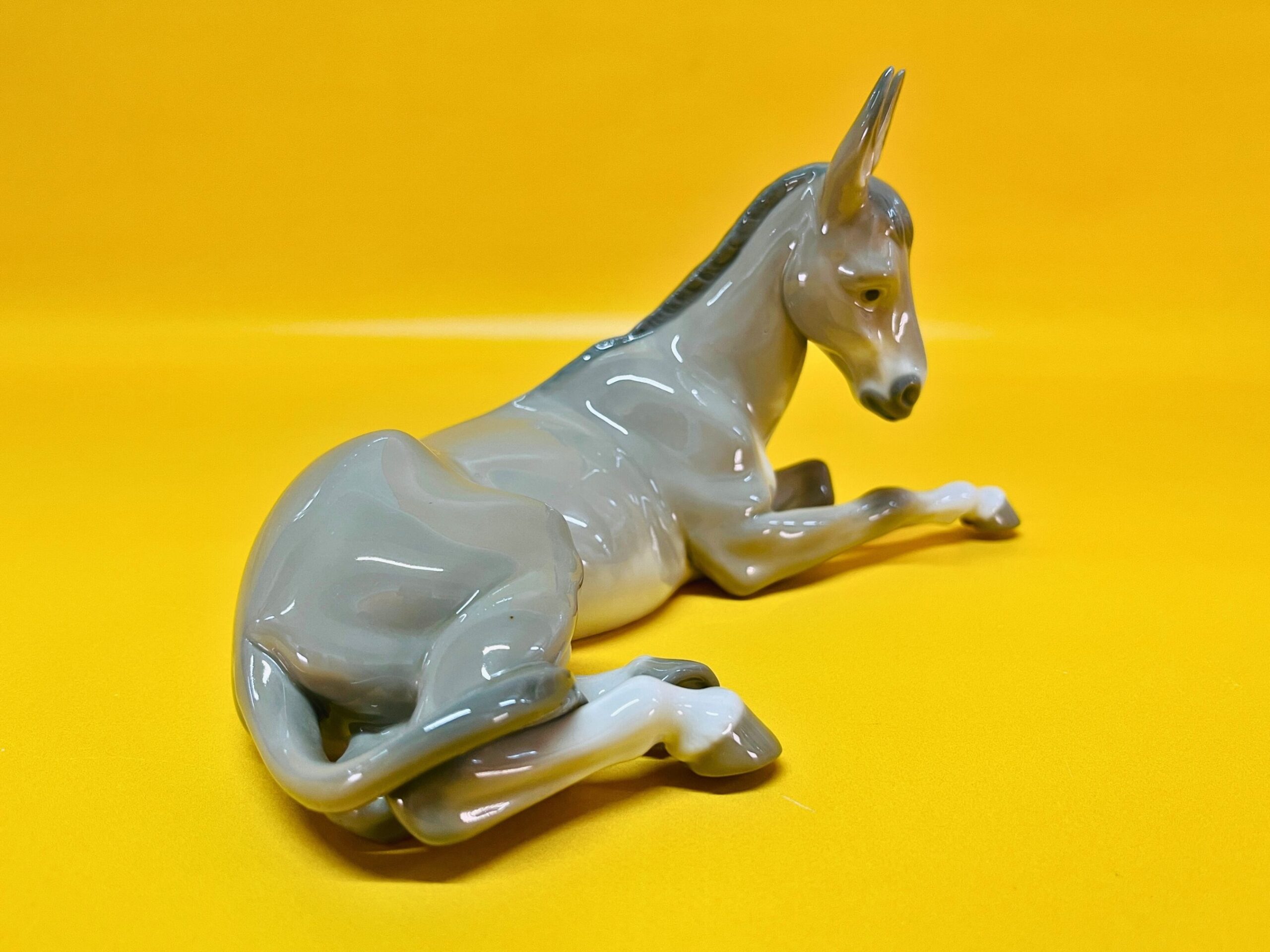 This elegant porcelain figurine by Lladro features a peaceful donkey, part of the beloved Nativity collection, designed in the 1980s. Handmade in Spain, it displays the exceptional craftsmanship and serene expression characteristic of Lladro’s traditional religious and animal-themed pieces.
