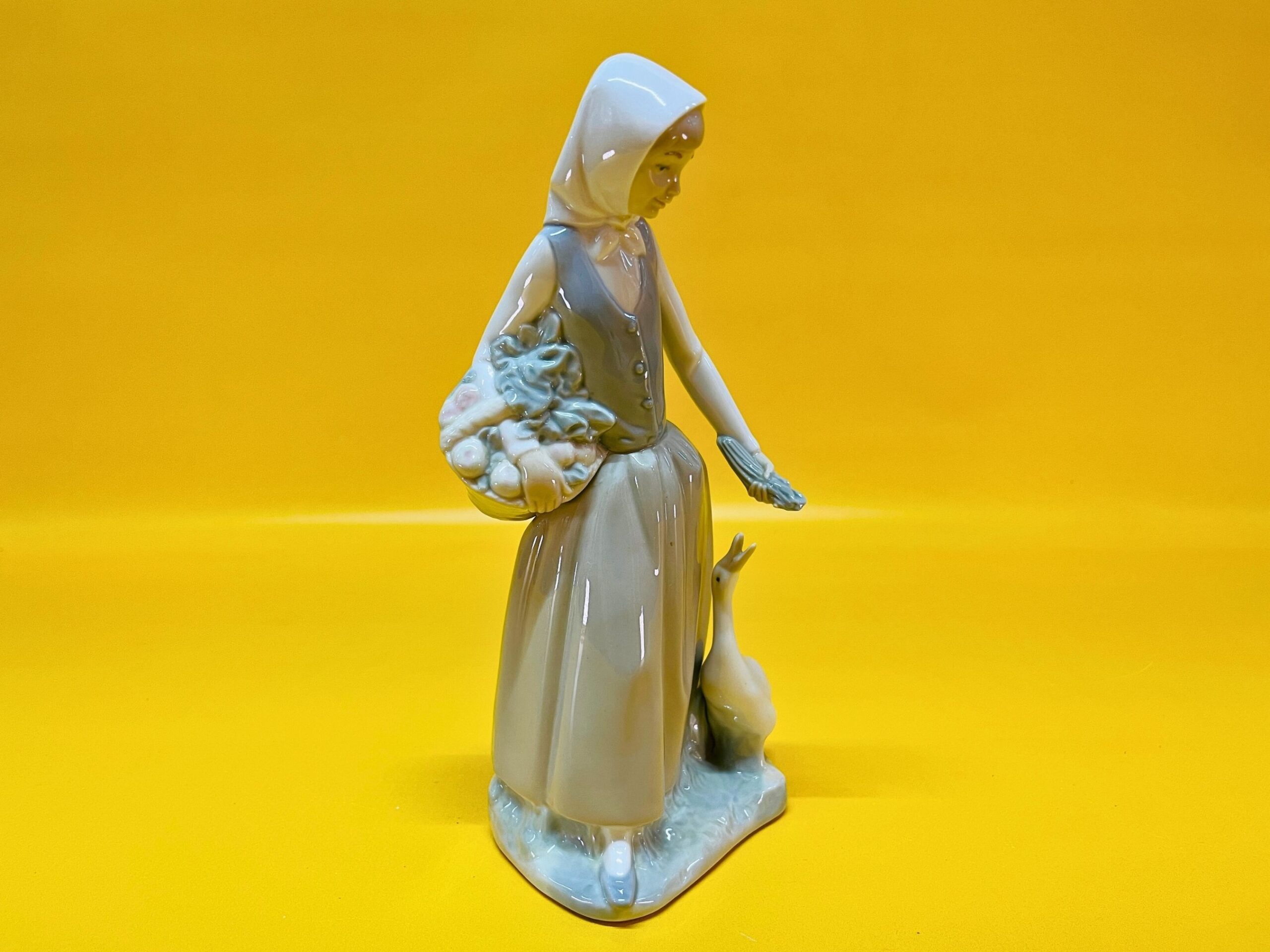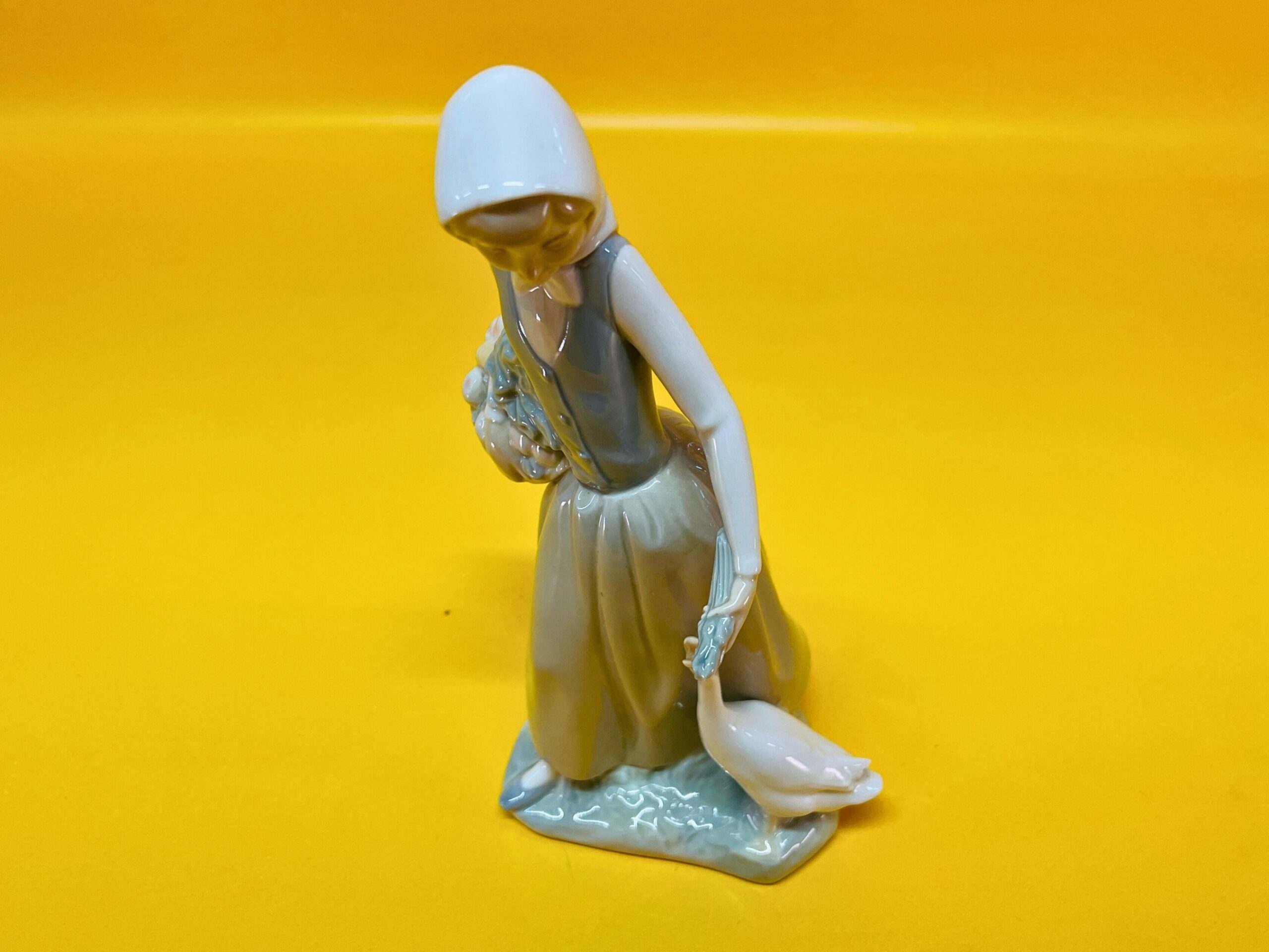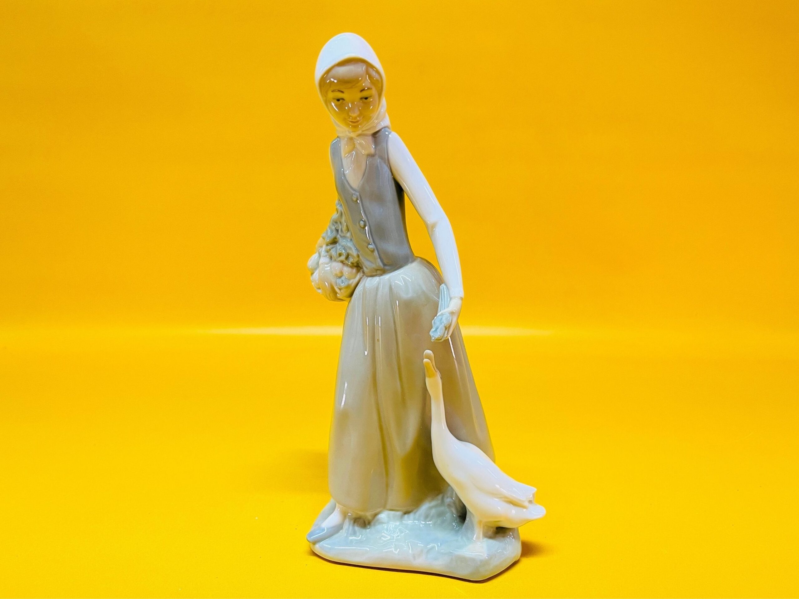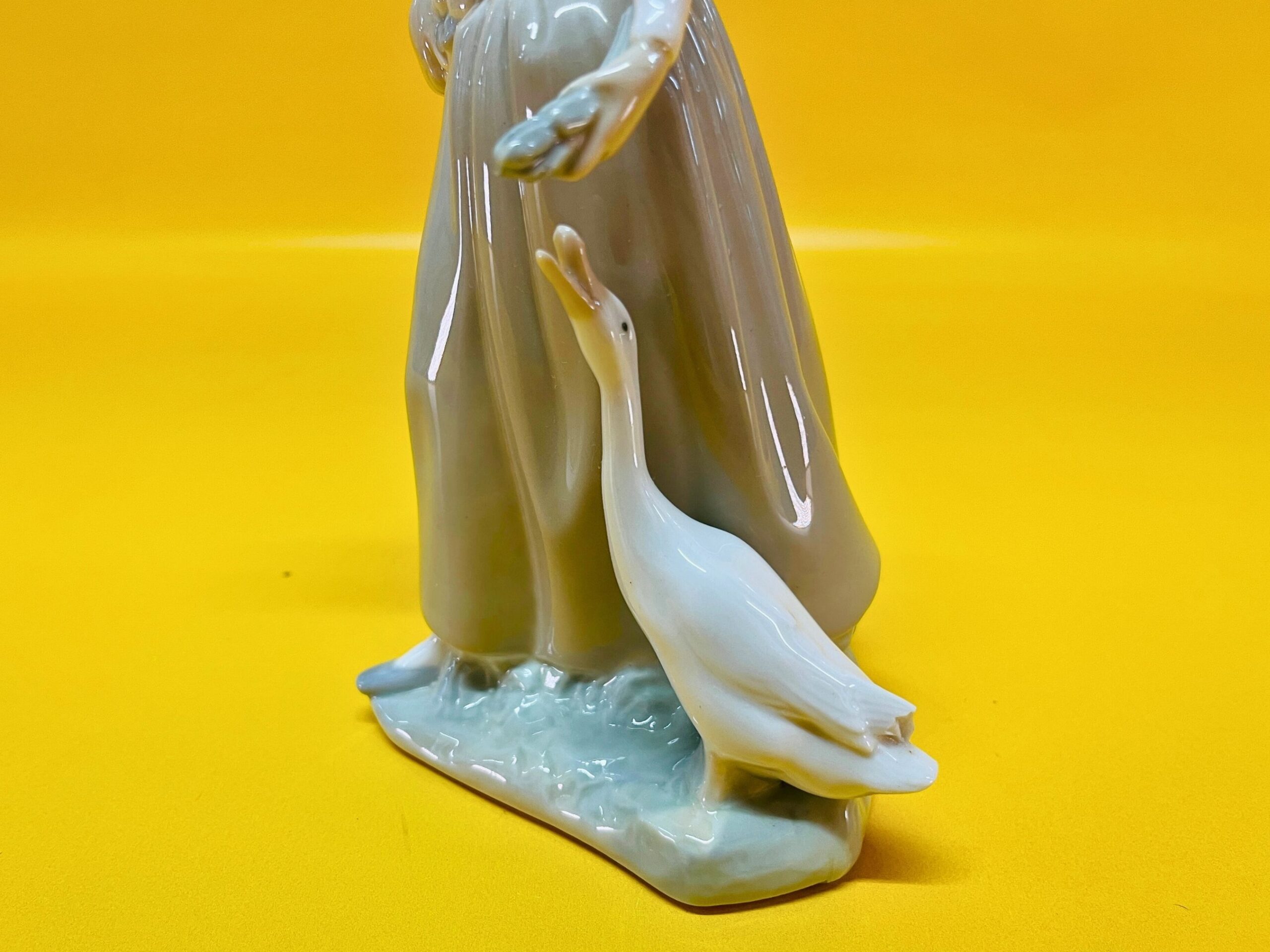 Bring timeless beauty into your home with this delicate porcelain figurine by Nao by Lladro, featuring a woman with a basket and a duck. Crafted in Spain around the 1980s, this piece captures the softness and elegance that have made Lladro creations so beloved among collectors.