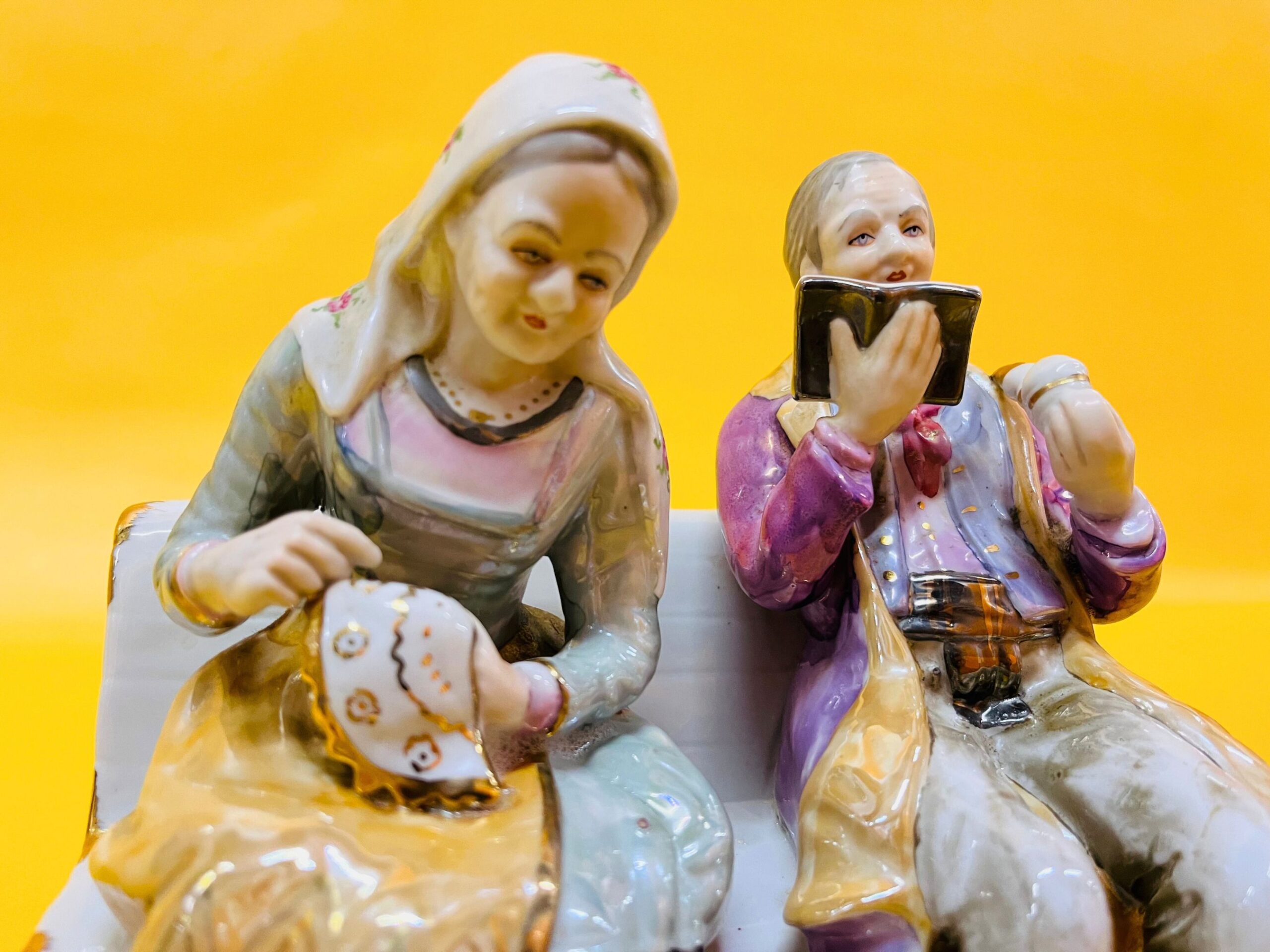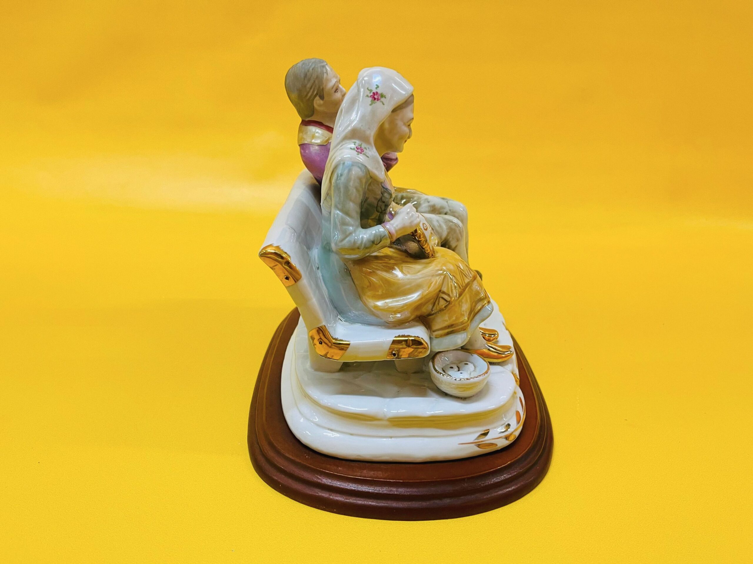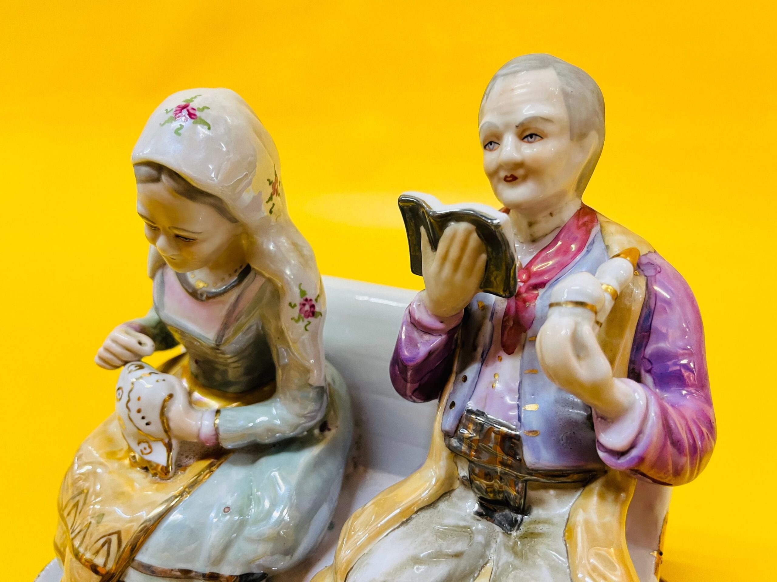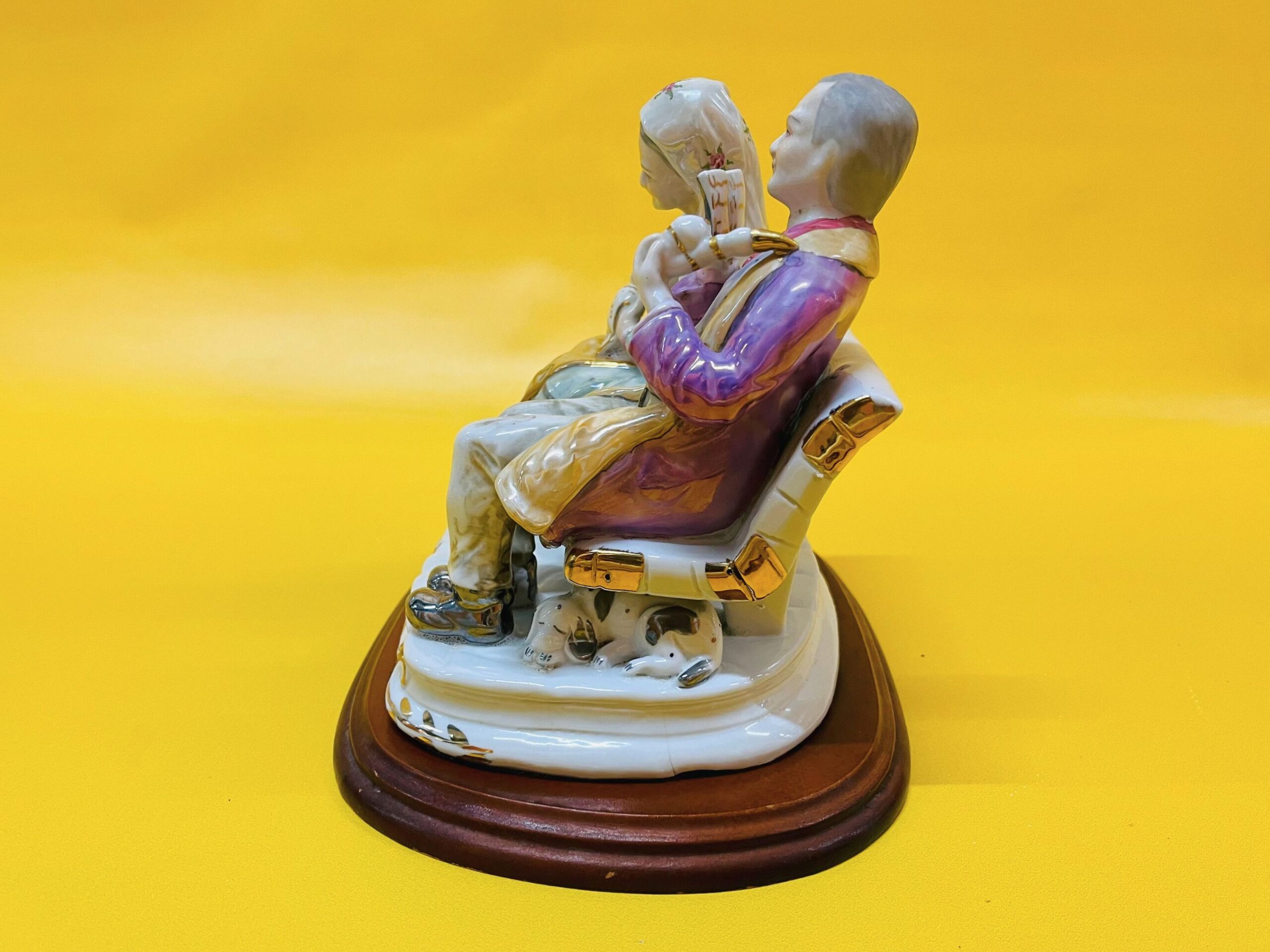 This vintage porcelain figure makes a unique gift for grandparents or a charming addition to any retro home decor or collector’s display. The craftsmanship captures a heartwarming moment, making it a timeless decorative piece.