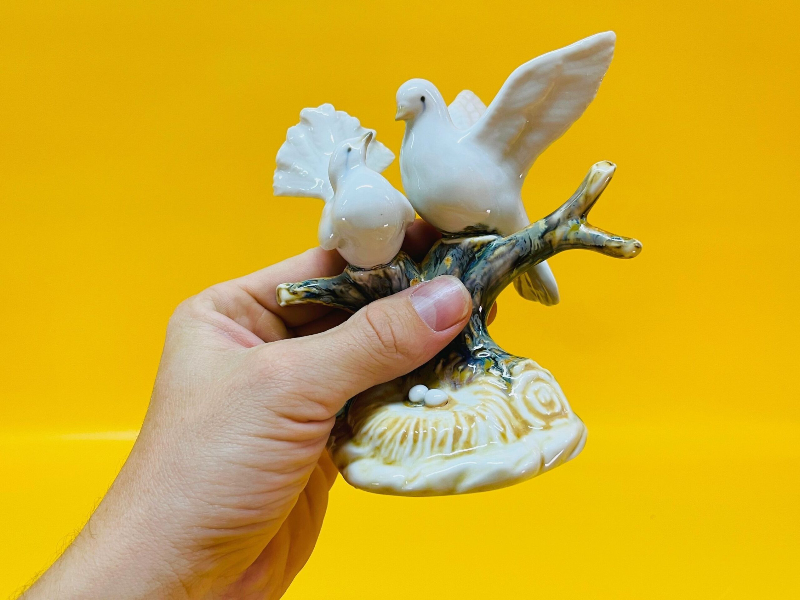 Vintage Segarra Porcelain Doves Figurine – Handmade in Spain, 1970s–1980s
