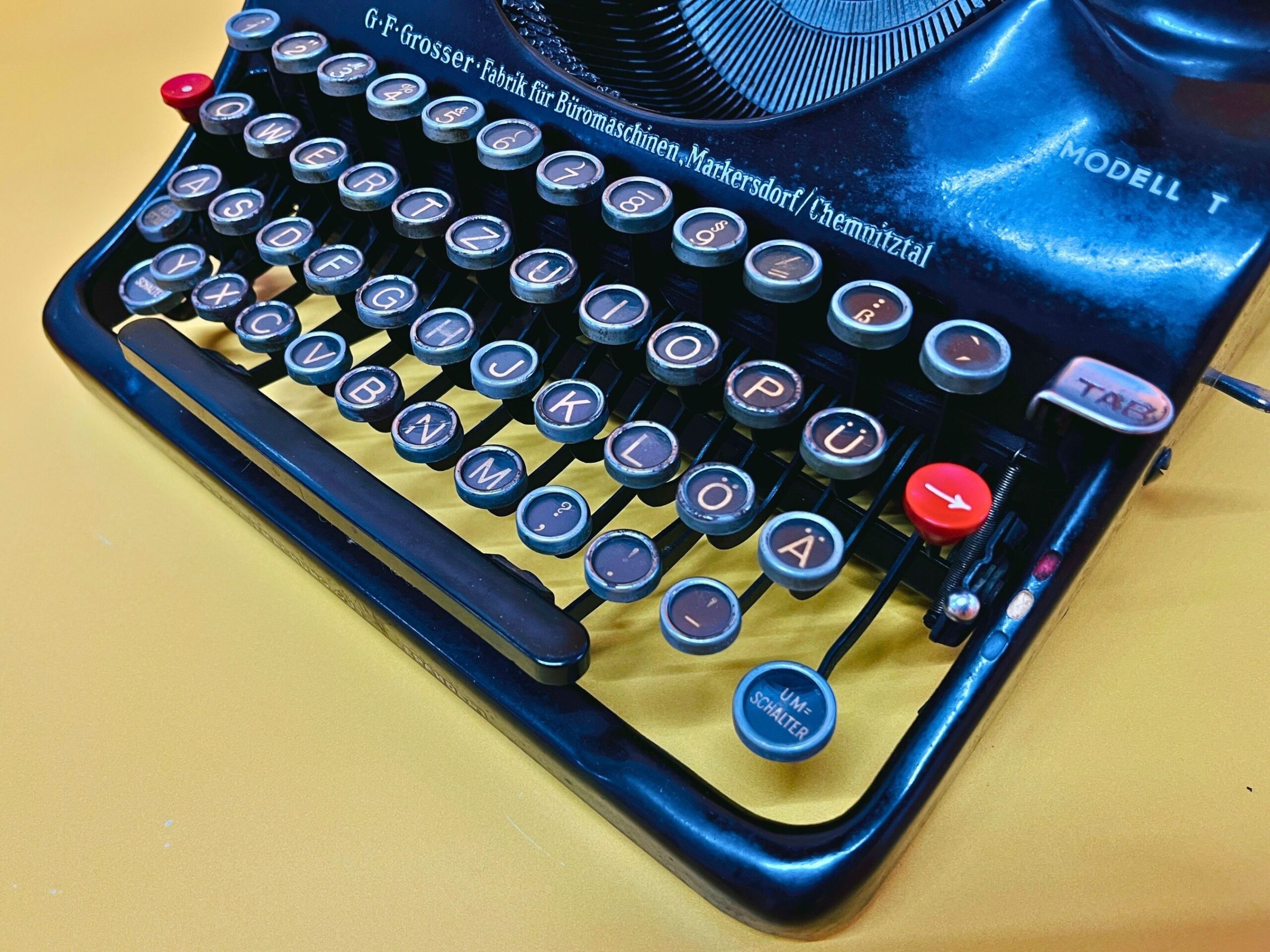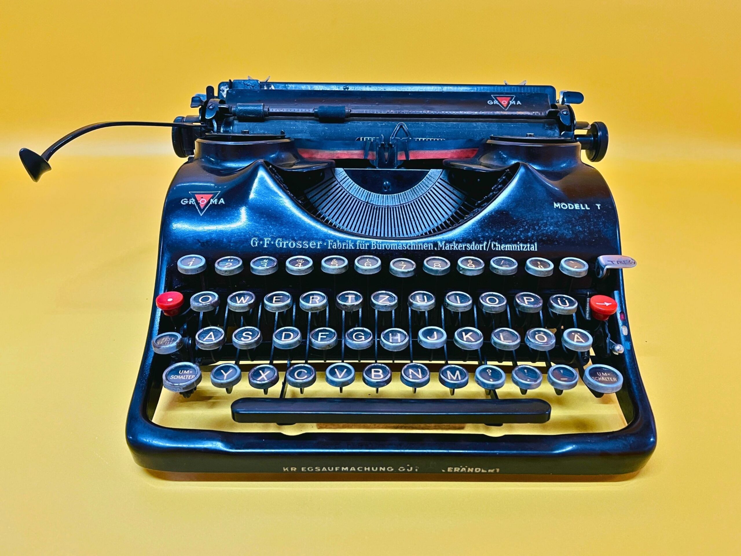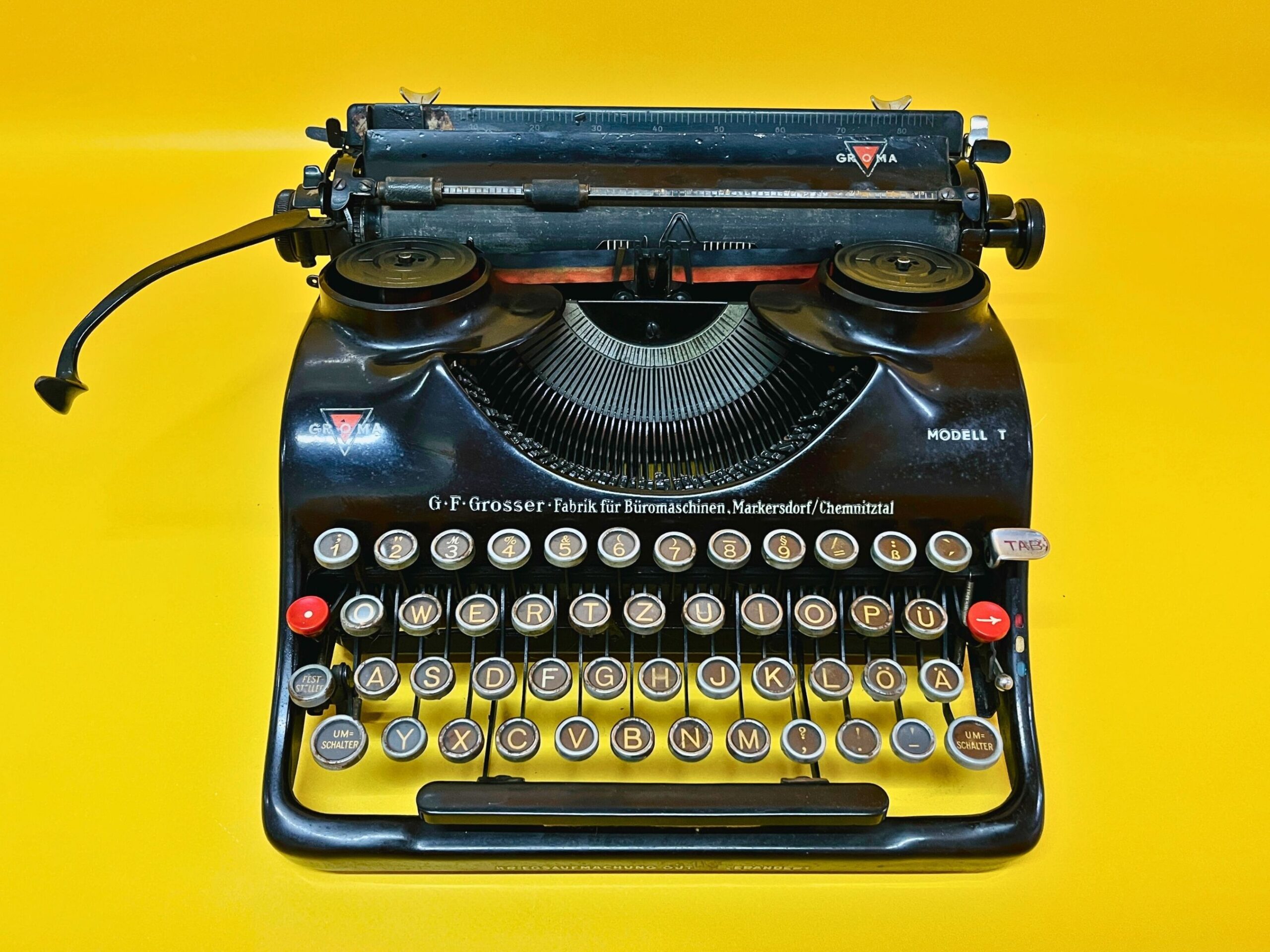 ✨ Vintage Groma Modell T Typewriter – Black – With Case – QWERTZ Keyboard & Glass Keys