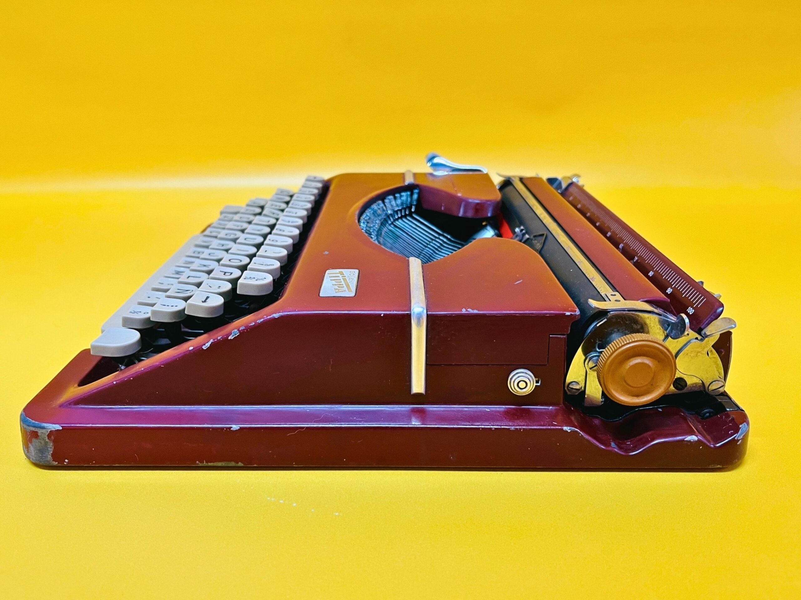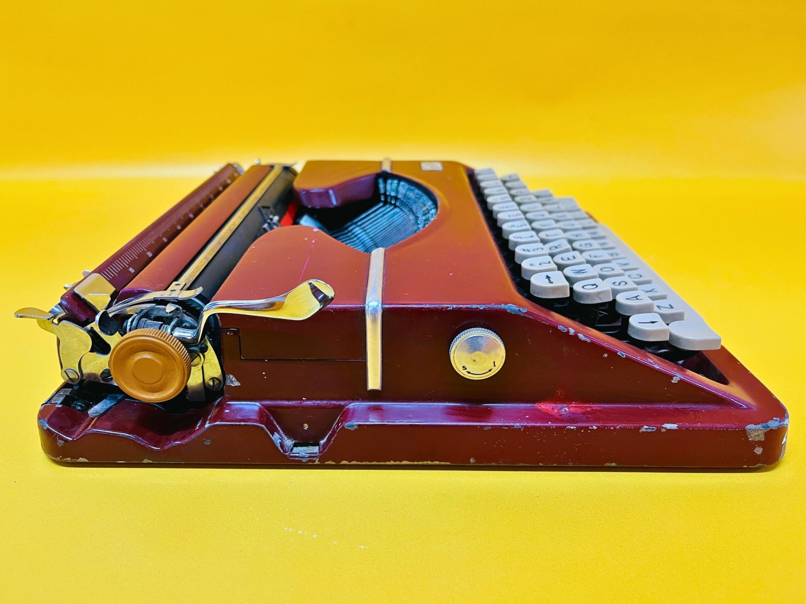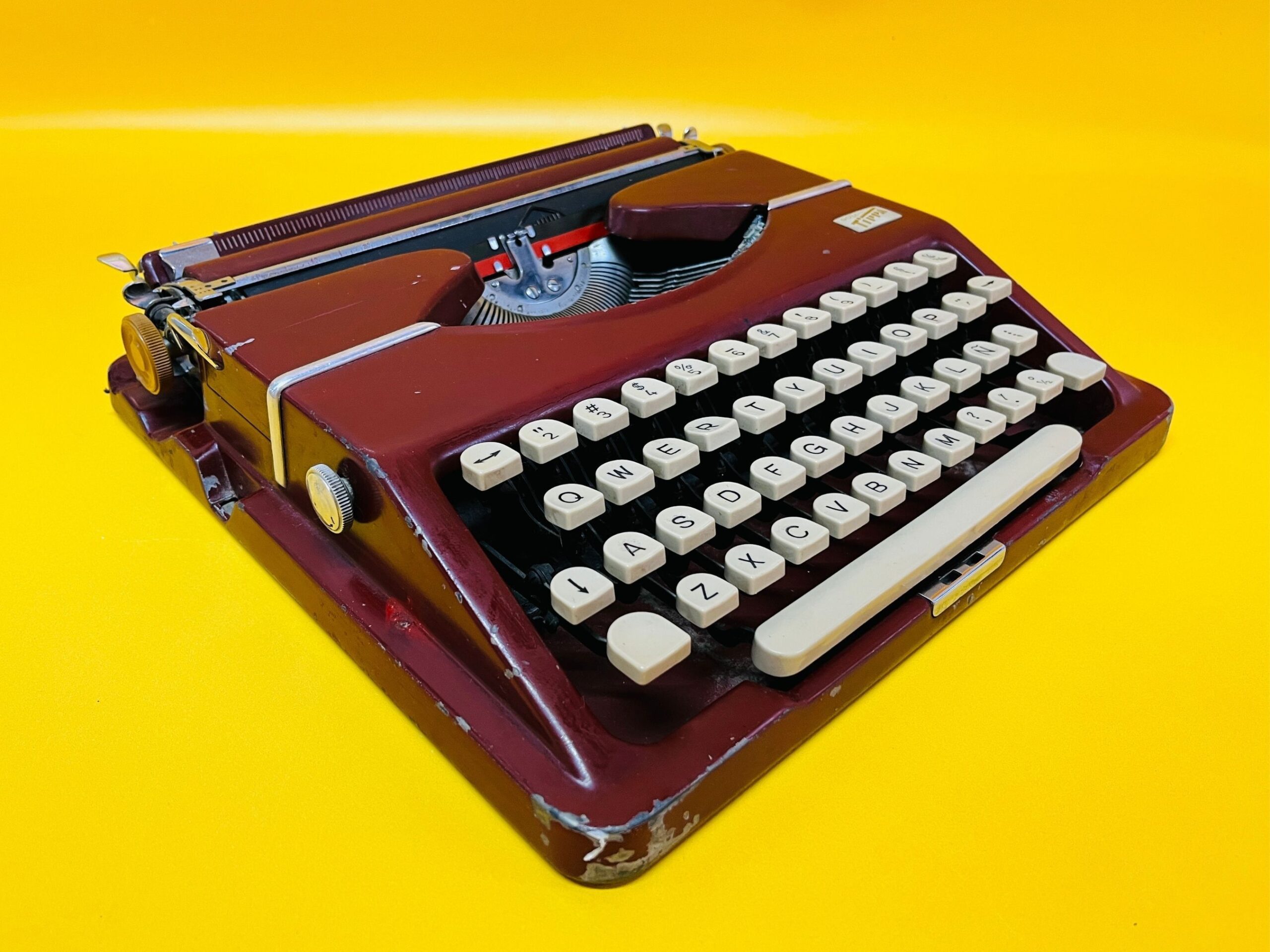 🧭 Classic Maroon-Red Finish – A rare and sophisticated color that enhances its vintage appeal. It shows noticeable signs of use, as seen in the photos, but remains in perfect working condition. One key is missing (see near the backspace) and the backspace bottom is a bit twisted, none of those things preventing from comfortable usage.