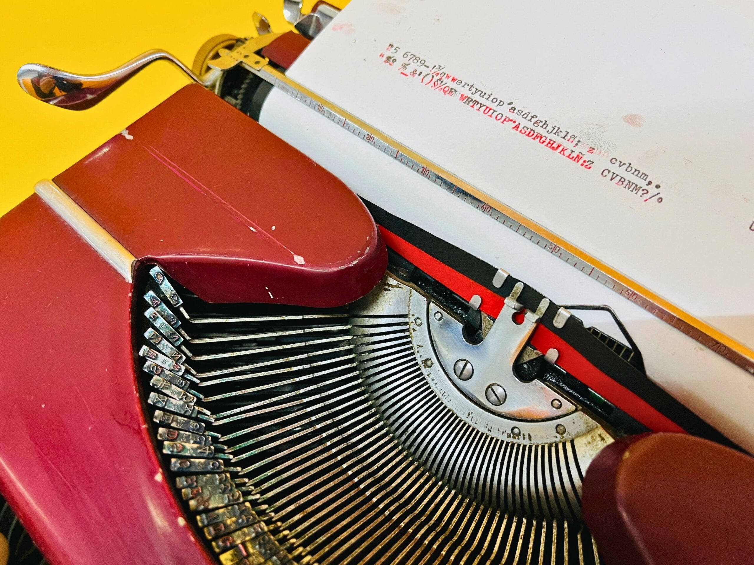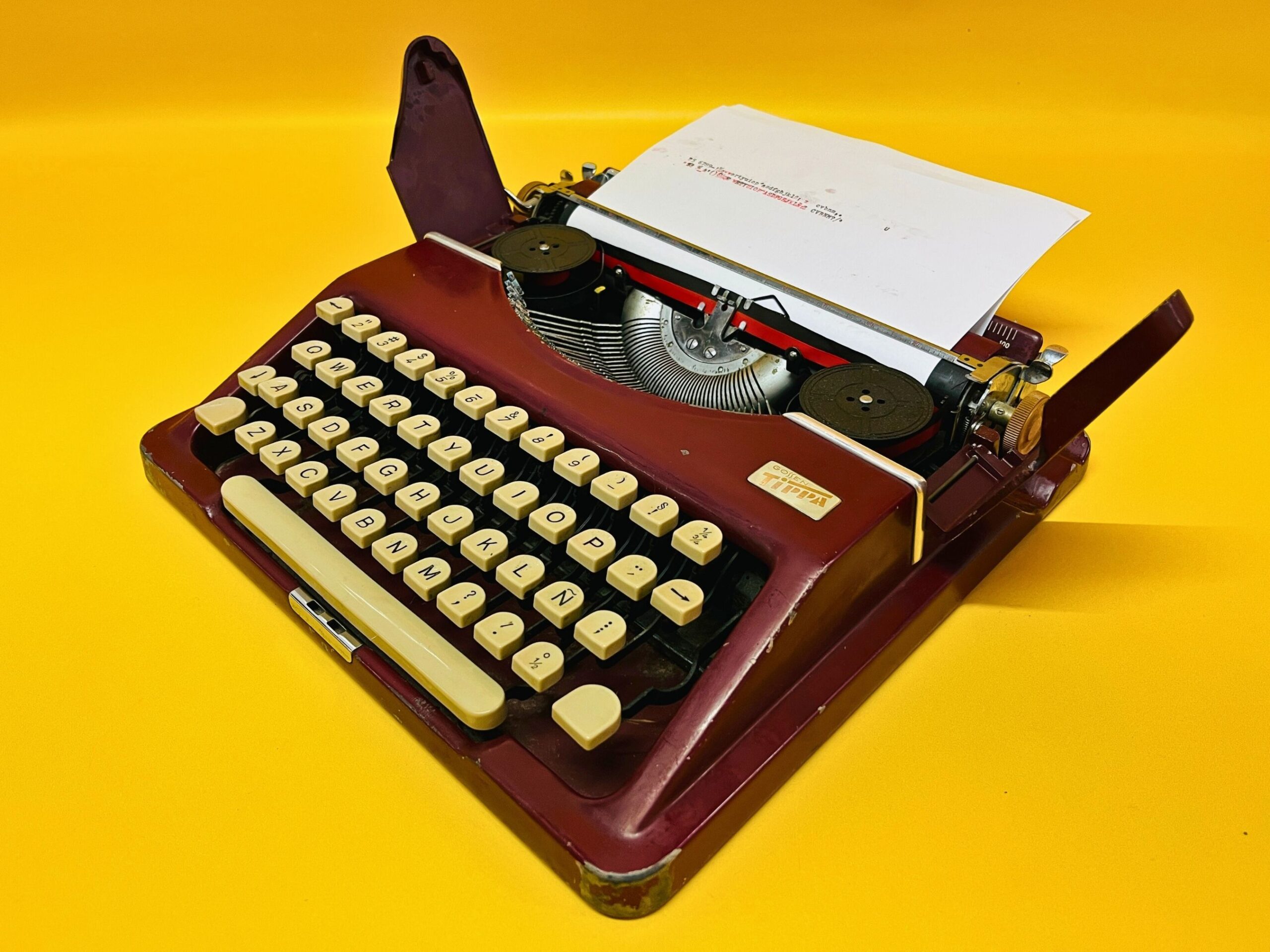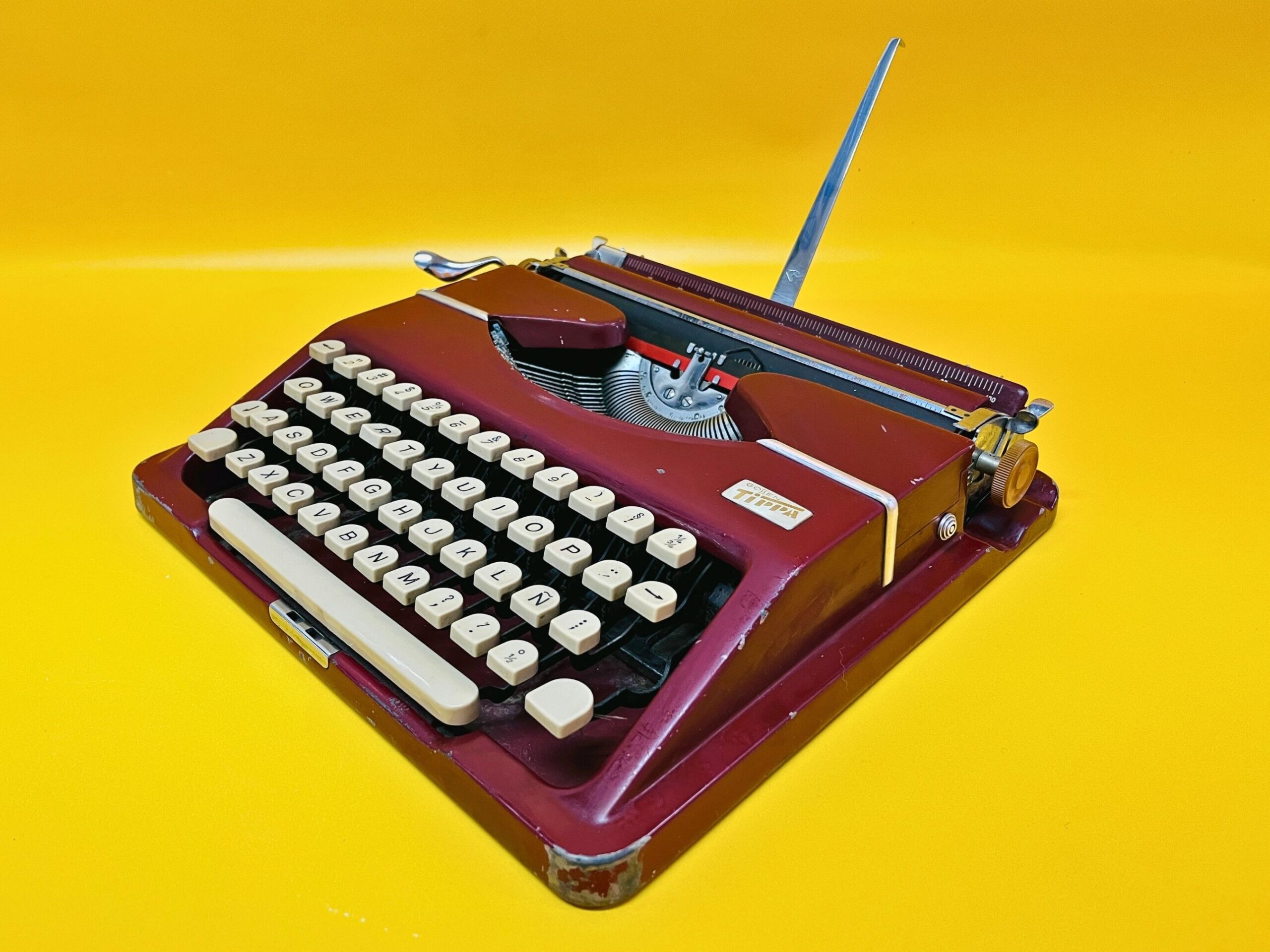 🧭 Classic Maroon-Red Finish – A rare and sophisticated color that enhances its vintage appeal. It shows noticeable signs of use, as seen in the photos, but remains in perfect working condition. One key is missing (see near the backspace) and the backspace bottom is a bit twisted, none of those things preventing from comfortable usage.